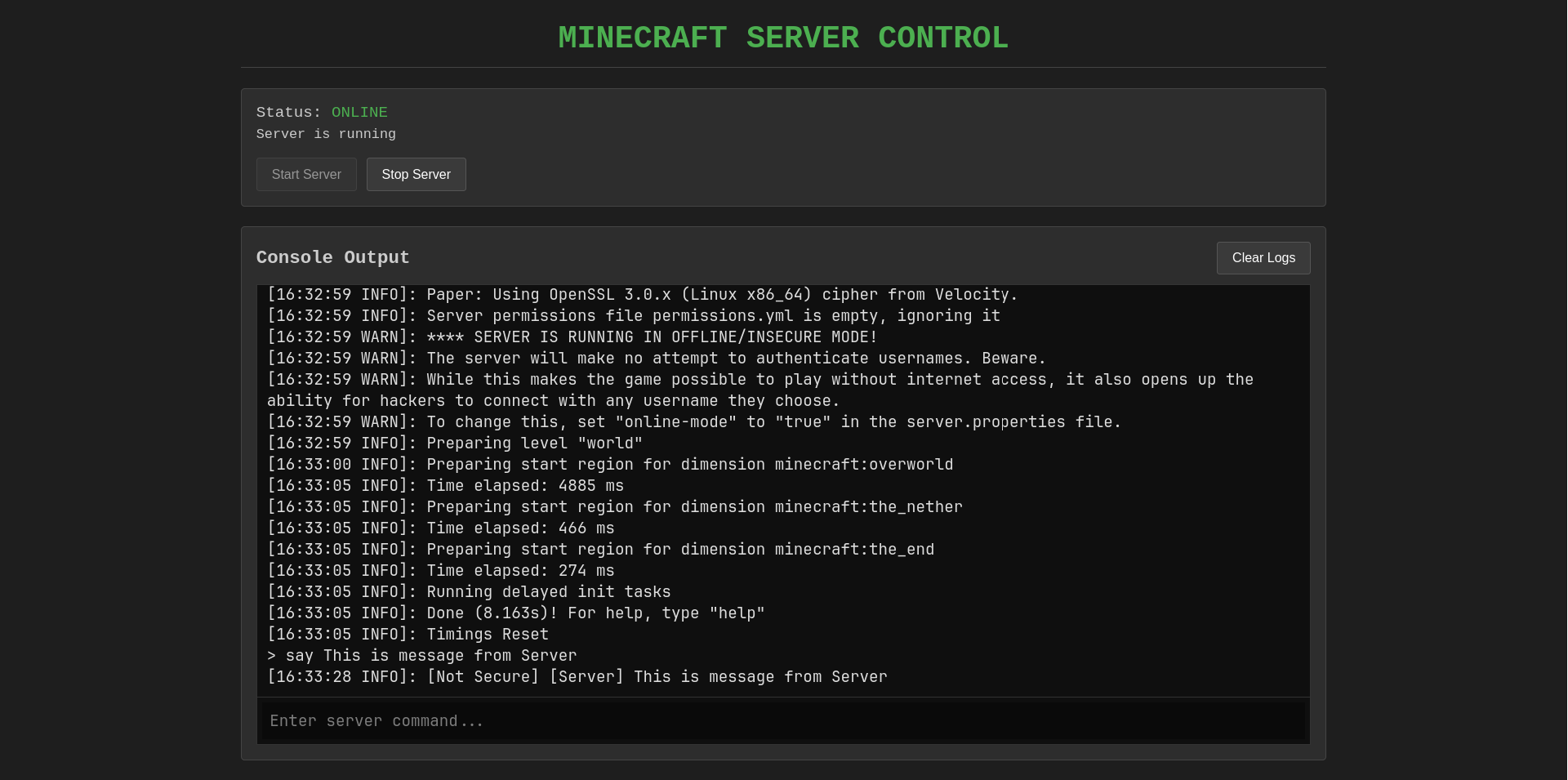 craftt was born from observing my brother’s struggle to manage our Proxmox-hosted Minecraft server due to limited terminal/SSH knowledge. This web app simplifies server control with one-click start/stop, live log viewing, and command execution. Beyond solving accessibility issues, it became a learning platform where I mastered Linux container process control, built secure TLS-enabled Go servers, and engineered real-time WebSocket data streaming for log interactions.